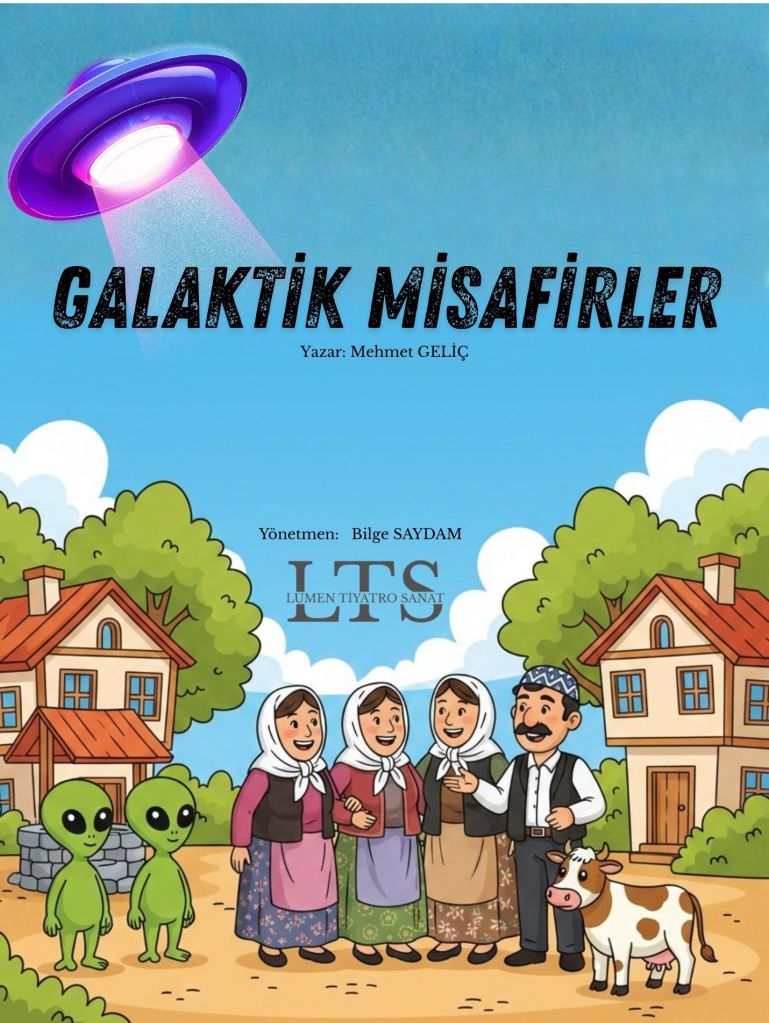 “Eğer galaksinin öbür ucundan gelen misafirler, iniş yapmak için Türkiye’nin küçük bir köyünü seçerse ne olur? Galaktik Misafirler, uzay teknolojisi ile köy geleneklerinin, lazer tabancaları ile çay sohbetlerinin birbirine karıştığı kahkaha dolu bir kültür çatışmasını sahneye taşıyor.