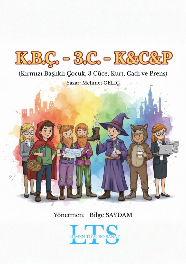 “Bildiğiniz tüm masalları unutun, çünkü bu masallar birbirine girdi! Kırmızı Başlıklı Çocuk’un sepeti kaybolmuş, cücelerin sayısı azalmış, kurt ise ne yapacağını şaşırmış durumda. K.B.Ç – 3.C – K&C&P, klasik masal dünyasının görünmez duvarlarını yıkan, karakterlerin kendi hikayelerine dönmek için verdiği absürt ve kahkaha dolu mücadeleyi sahneye taşıyor.